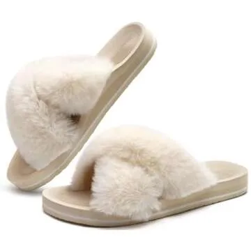 COFACE Women’s Fuzzy Slides Fluff Faux Fur Arch Support Open Toe Sandals