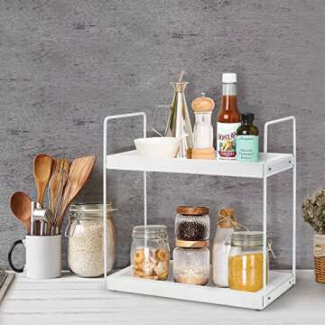 Show more Introducing the ultimate solution for organizing and beautifying your space - the Multi-Purpose Countertop Shelf! This thoughtfully designed piece features a 2-tier structure, offering ample space to store everything from paper cups and tea bags to condiments and personal care items. Crafted with both functionality and aesthetics in mind, it blends seamlessly into any environment, making it a perfect centerpiece for your kitchen or bathroom.