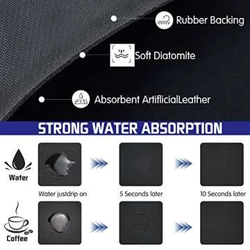 Coffee Bar Mat for Spill-proof, 24 x 16 Inch Hide Stain Abosrbent Mat | Non-Slip Rubber Backed Coffee Bar Accessories Under the Cofee Machines (Black)