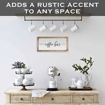 Show moreIntroducing the perfect touch for your coffee nook, our charming Coffee Bar Sign, designed to elevate your space with a delightful farmhouse decor vibe. This whimsical sign captures the essence of cozy gatherings and invigorating coffee moments, making it an essential addition to your home. Crafted from solid fir wood, this sign embodies durability and beauty, ensuring it remains a staple for years to come. The quality construction promises that it won’t crack, rot, or break, meaning your coffee bar display will look pristine through countless brews.