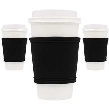 Show more Introducing our Coffee Cup Sleeves, the perfect solution for those chilly mornings and hot beverages! Made from premium neoprene, these insulated sleeves offer outstanding protection for your hands against hot cups while keeping your drinks cold without causing sweat. Designed to fit standard 12oz to 24oz paper coffee and tea cups, our versatile sleeves are compatible with popular brands like Starbucks, McDonald's, Peet's, and Caribou Coffee. With its sleek black design, not only will you enjoy stress-free sipping, but you'll also look stylish while doing so!