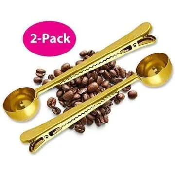 Show moreIntroducing the 2 Pack Food-grade 304 Stainless Steel Ground Coffee Measuring Spoon/Scoop with Bag Clip by Ergonflow, a perfect blend of functionality and elegance. Crafted from high-quality 304 stainless steel, these coffee scoops are not just tools but a statement of style. The luxurious gold plating gives these scoops an exquisite touch, making them a beautiful addition to your kitchenware. Featuring a long handle design, the spoons are uniquely crafted to easily reach the bottom of coffee bags, ensuring every scoop is as fresh as the last.