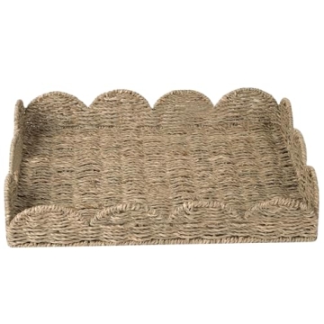 Stunning Scalloped Edge Coffee Tray - Rattan Serving Tray 19.7x14.6x3.9 Inch