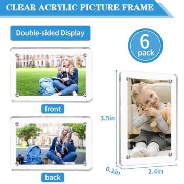 COIDEA 6 Packs Acrylic Fridge Magnetic Instax Frame, 2.36x3.54 Inch Polaroid Frame,Polaroid Magnet Frame for Refrigerator, Double Sided Mini Picture Frames