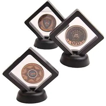 Show moreThe **Coin Display Stand - Set of 10** offers a perfect blend of elegance and functionality, designed to showcase your cherished collectibles and awards. Each frame in this set measures **2.75 x 2.75 x 0.75 inches**, crafted from high-quality materials that ensure durability. The innovative **3D floating design** not only elevates the visual appeal of your coins, challenge coins, AA medallions, jewelry, and more, but also allows them to stand out without any obstruction. With a **sleek black finish**, these display holders add a touch of sophistication to any space, making them ideal for personal use or as a thoughtful gift for collectors and enthusiasts alike.