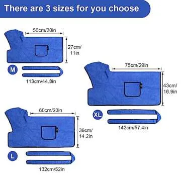 CoiTek Dog Bathrobe Towel with Double Pocket, Wearable Dog Towel Super Absorbent Fast Drying Pet Towel Soft Dog Bath Robe with Hat and Belt for Medium Large Dogs
