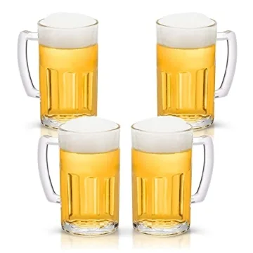 Introducing the COKTIK 4 Pack Heavy Large Beer Glasses with Handle, expertly crafted to elevate your drinking experience. Each beer stein holds a generous 20 ounces of your favorite beverage, whether it's a thick ale, a refreshing lager, or even a steaming cup of coffee. The classic German beer mug design is not only aesthetically pleasing but also functional, ensuring your drinks stay cold while amplifying their taste and aroma. With dimensions of 5.3 inches...