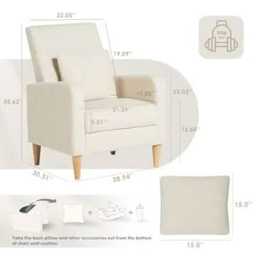 Show more Introducing the COLAMY Modern Upholstered Accent Chair—the perfect blend of style and comfort for your living space. This chic armchair features soft sherpa fabric that provides exceptional comfort while its ergonomic design, including padded armrests and a slightly curved backrest, ensures that you can relax in style. The inclusion of an extra back pillow enhances support, making it ideal for hours of reading or unwinding with a cup of coffee. At first glance, its subtle beige tones complement any décor, transforming even the smallest corner of your home into a cozy retreat.