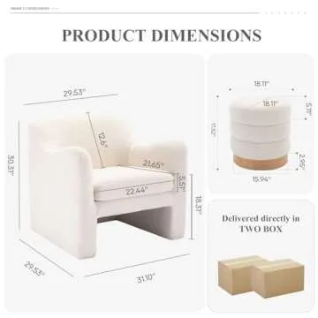 COLAMY Sherpa Barrel Accent Chair with Ottoman Footstool, Living Room Chair with Back, Single Sofa Armchair with Tufted Foot Rest Stool, Cream
