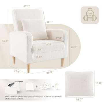 COLAMY Sherpa Upholstered Accent Chair with Back Pillow - Cozy Armchair for Any Space