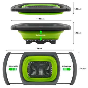 Colander Collapsible, Kitchen Strainers with Extendable Handles, 1pc 6-quart and 1pc 2-quart Capacity Over the Sink Colander, Folding Strainer for Draining Fruit & Pasta (Green)