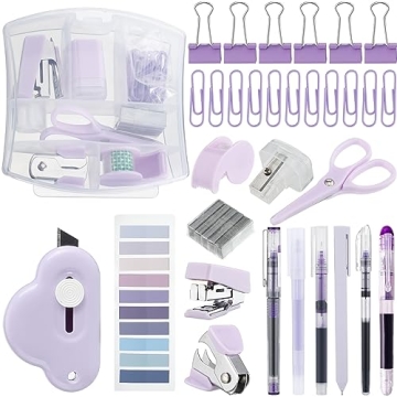 Constructed primarily from reliable ABS materials, the kit ensures safety while providing sturdy use. The stapler, built to last with solid metal components, promises a smooth feel that won't easily break or deform. The purple-themed accessories don't just add a pop of color but also elevate the aesthetic of your workspace, making it look clean, tidy, and bright.