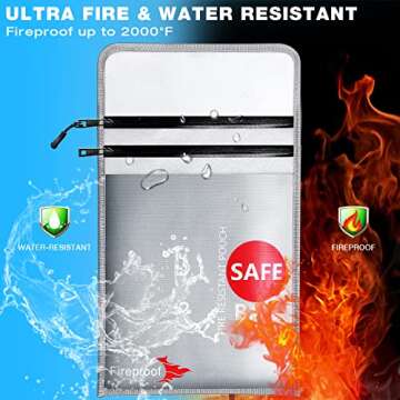 COLCASE Fireproof Document Bag Upgraded 2 Pockets (2000 ℉)15 x 11 Inches Silicone Coated Fireproof and Waterproof Bag Fireproof Safe Bag Storage for Money, Documents, Jewelry and Passport