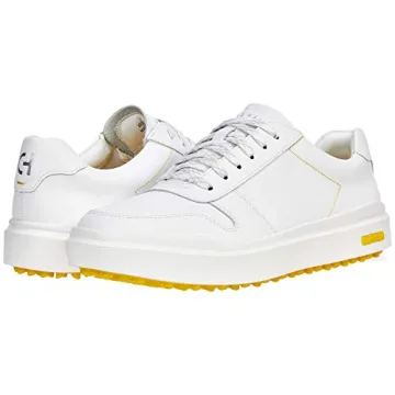 Show moreStep up your style game while ensuring comfort and practicality with the Cole Haan Women's GrandPro Rally Golf Waterproof Shoes. These sneakers masterfully combine functionality with aesthetics, making them perfect companions for a day on the golf course or a casual outing with friends. Their waterproof leather ensures your feet stay dry, while the lightweight construction and cushioned insole provide all-day comfort. The unique touch of yellow in the design adds a vibrant flair, bringing a refreshing twist to your outfit.