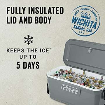 Coleman Classic Series Insulated Portable Wheeled Cooler, Leak-Resistant Outdoor Hard Cooler Keeps Ice up to 5 Days, 100-Quart