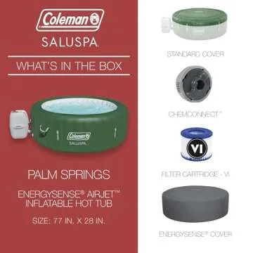Coleman Palm Springs EnergySense AirJet Inflatable Hot Tub Spa (77" x 28") | Portable Hot Tub with 2 Covers (1 Energy-Efficient Thermal Cover and 1 Standard Cover) | Fits Up to 4-6 Persons | Green