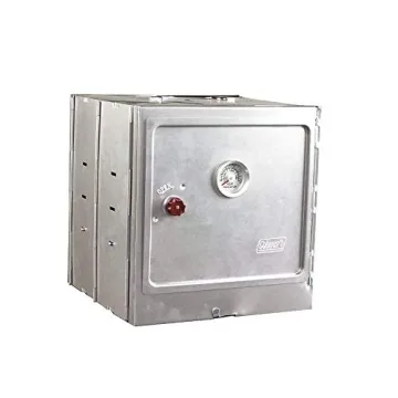 Show more Introducing the Coleman Portable Camping Oven, your ultimate outdoor companion for baking delicious treats right at the campsite! This innovative oven transforms your Coleman propane and liquid fuel camp stoves into a portable baking paradise. Measuring a compact 13.5 x 12.9 x 3.3 inches, it fits seamlessly atop your stove while providing ample baking space. The design is not only robust, featuring aluminum construction that resists scratches and corrosion, but it also folds flat for effortless storage, making it a must-have for camping enthusiasts.