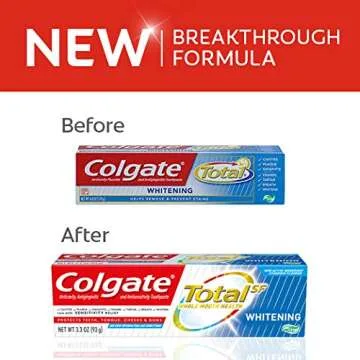 Show moreIntroducing the Colgate Total Whitening Toothpaste Gel, your new secret weapon for an unparalleled oral hygiene experience. This innovative 3.3 Oz mint-flavored gel is expertly designed to not only brighten your smile but to provide a complete dental care solution all in one tube. Created with advanced technology, this toothpaste tackles stubborn stains while preventing new ones from establishing, ensuring your smile remains radiant. Proudly brought to you by Colgate, a trusted leader in dental health, this product goes beyond the basics of traditional toothpaste – it actively fights bacteria across your entire mouth, including teeth, tongue, cheeks, and gums, promoting excellent overall oral health.