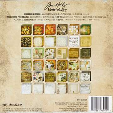 Collage Mini Paper Stash by Tim Holtz Idea-ology, 36 Sheets, Double-Sided Cardstock, 8 x 8 Inches, Multicolored, TH93054