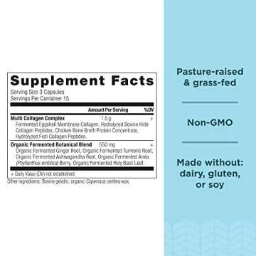Show moreIntroducing the Collagen Pills Peptides Powder Supplement by Ancient Nutrition, your new daily companion for comprehensive health support. This supplement contains 45 easy-to-swallow capsules designed with a powerful blend of hydrolyzed collagen types I, II, III, V, and X. Each type plays a vital role in promoting overall wellness, including enhancing skin elasticity, strengthening nails, and ensuring your joints stay comfortable and healthy. Just take three capsules daily with your favorite beverage, and experience the revitalizing benefits of collagen in a format that fits seamlessly into your routine.