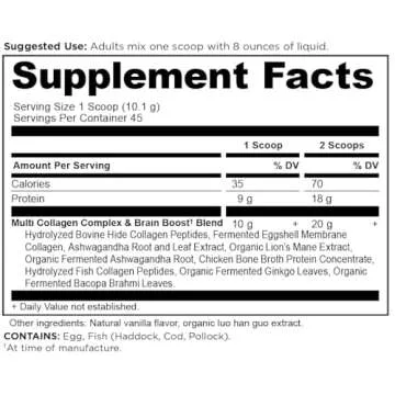 Show moreIntroducing the Collagen Powder Brain Boost by Ancient Nutrition, an exceptional supplement designed to elevate your body and mind! This revolutionary product features 10 types of collagen sourced from the finest ingredients including grass-fed, pasture-raised cows and free-range eggs from Midwest farms. With 45 servings packed in each container, this collagen protein powder is perfect for supporting overall structural integrity while simultaneously providing mental enhancement. Users rave about its versatility; whether you prefer a warm drink or a refreshing smoothie, this powder seamlessly blends into your routine.
