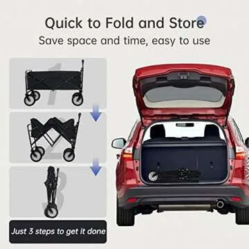 Collapsible Folding Wagon Garden Cart Beach Wagon Grocery Wagon All-Terrain Wheels Garden Grocery Wagon (Black)