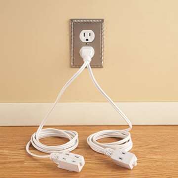 Show moreSay goodbye to cable clutter! The Collections Etc Double Ended Extension Cord is your ultimate solution for maximizing your electrical sockets without sacrificing space or safety. Designed with versatility in mind, this ingenious extension cord features 3 outlets per arm, allowing you to easily plug in up to six devices from just one outlet. Whether you're simplifying your holiday lighting displays or organizing your entertainment system, this extension cord is here to streamline your setup.