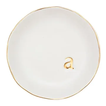 Show moreIntroducing the exquisite monogrammed ceramic jewelry dish, an elegant piece that adds a touch of sophistication to any decor. With dimensions of 4.75 x 4.75 inches, this compact yet functional tray provides the perfect space to hold your cherished jewelry, including bracelets, necklaces, rings, and earrings. Crafted from high-quality ceramic, this dish is both lead-free and cadmium-free, ensuring durability while showcasing a sleek aesthetic. Its black surface adorned with stunning gold text creates a luxurious appeal that makes it more than just a storage solution—it’s an eye-catching decorative accessory for your home, office, or any room.