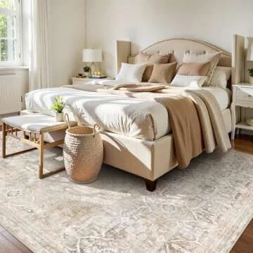 Collive Washable Area Rug 8x10 – Soft Non-Slip Beige Boho Carpet for Any Home