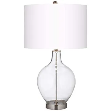 Color + Plus Table Lamp Fillable 28.5" Tall Clear Glass OVO White Linen Drum Shade for Living Room Family Bedroom Bedside Nightstand