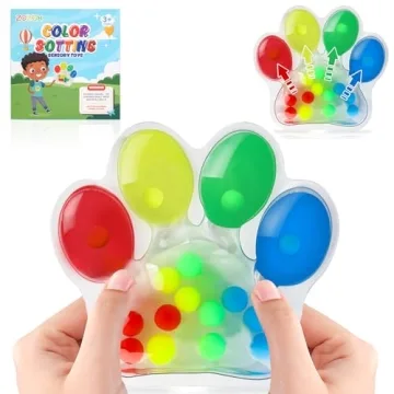 Show more Experience the joy of learning and play combined with our unique paw-shaped squeeze color sorting sensory toy. Tailored for toddlers aged 1-3 and preschoolers up to 5 years old, this vibrant and interactive toy transforms ordinary learning into an exciting adventure. The colorful, squishy surface sparks curiosity, allowing children to develop vital fine motor skills as they sort and match an array of assorted rubber beads. With each squeeze, little ones explore distinctive colors that are pleasing to the eye and help cultivate their color recognition skills in a fun, hands-on manner.