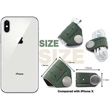 ColorCraftsman Handmade Cord Holder Cable Organizer, Cord Winder Headphone Holder Earbud Organizer, Charger Cord Organizer Earbud Holder for Work and Travel, Premium Horween Leather, Green 2 Pack
