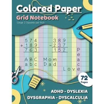 Introducing the Colored Grid Paper Notebook, a fantastic tool designed to enhance the learning experience for both kids and adults, particularly those with ADHD, dyslexia, dysgraphia, dyscalculia, Irlen syndrome, and visual stress. Measuring a generous 8.5 x 11 inches and featuring 72 pages, this notebook is perfect for a variety of activities, from note-taking and sketching to organizing thoughts and solving math problems. The unique 2 squares per...