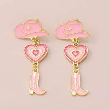 COLORFUL BLING Bohemia Cattle Head Dangle Earrings Colored Enamel Animal Bull Cow Herd Head Flowers Charms Drop Earrings Ethnic Vintage Jewelry for Corrida Vacation-H pink cowboys