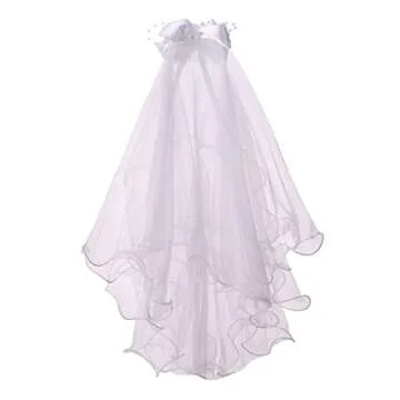 Colorful House Flower Girls White First Communion Veil Headband with Bow (60cm/24 inch, Bead bowknot)