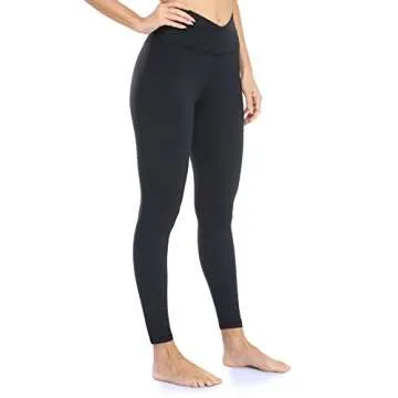 Colorfulkoala Women's Cross Waist Leggings with Pockets Full Length Yoga Pants (M, Black)