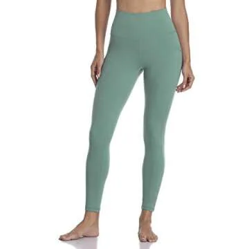 Colorfulkoala Women's High Waisted Tummy Control Workout Leggings 7/8 Length Yoga Pants with Pockets (M, Smoky Green)
