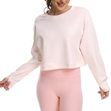 What sets this sweatshirt apart is its crop-length cut, providing a flattering silhouette that beautifully complements your figure while offering ample coverage around the waistband. The long sleeves enhance warmth, and the unique thumbhole design adds a functional twist, making it ideal for cooler weather or as you move through your active pursuits. This pullover is not just a clothing item; it's a versatile wardrobe staple that adapts effortlessly, taking you from a sweat session at the gym straight to a coffee date with friends.