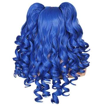 ColorGround Long Curly Cosplay Wig with 2 Ponytails (Blue)