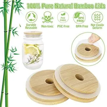 COLOROUND 2 Pack Mason Jar Lids with Straw Hole - Reusable Bamboo Lids with 3 Stainless Steel Straws & 1 Brush for Regular Mouth Mason Jars