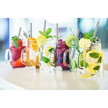 COLOROUND 6 Pack Regular Mouth Mason Jar Mug Cups with Handle 16 oz with Bamboo Lids & Stainless Steel Straws Retro Drinking Glass Reusable Smoothie Juicing Cup with Lids for Juices Shakes (Set of 6)