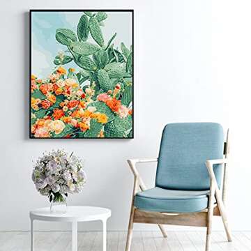 Show more Discover the joy of artistry with the COLORWORK 16" W x 20" L Paint by Numbers kit featuring a stunning design of a cactus adorned with vibrant flowers. This DIY painting kit is meticulously crafted to ignite creativity in both adults and kids, allowing you to transform a blank canvas into a beautiful masterpiece with ease. Whether you're an aspiring artist or someone simply looking for a relaxing and fulfilling activity, this paint by numbers kit is designed to cater to all skill levels.