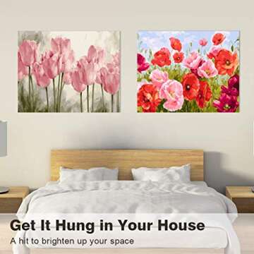 COLORWORK DIY Paint by Numbers Kit - Pink Tulips Canvas Art for Everyone, 16"x20"