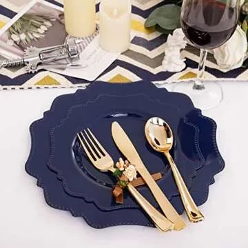 COLOSUS Navy Blue Disposable Plastic Party Plates Set Include 60pcs (30 guest) Dinner plate and Dessert Plate Heavy weight Party Dinnerware Plates