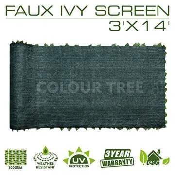 ColourTree 3' x 14' Artificial Hedges Faux Ivy Leaves Fence Privacy Screen Cover Panels Decorative Trellis - Mesh Backing - 3 Years Warranty