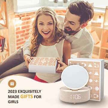 Show more Experience the ultimate multifunctional solution with the COLSUR 6-in-1 Wireless Phone Charger and Digital Alarm Clock! This stylish and innovative gadget serves as a Bluetooth speaker, digital display alarm clock, vanity mirror, night light, and phone holder—all combined into one sleek design. Perfect for women, teenage girls, or anyone looking to simplify their daily routine, this delightful gift merges practicality with elegance and modern chic.