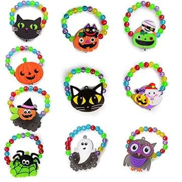Show moreIlluminate your Halloween festivities with our 20Pcs LED Bracelets, the perfect non-candy treat for trick or treaters and a must-have for any Halloween party. These glowing bracelets are not just any ordinary party favor; they are a vibrant way to enhance the holiday atmosphere with their glossy and luminous designs. Each bracelet lights up with high brilliance, featuring charming Halloween-themed patterns like pumpkins, bats, solo-eyes, spiders, and pirates, making them a hit among kids and adults alike.