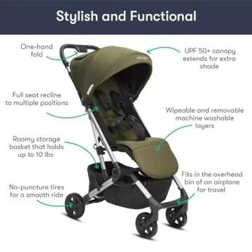Colugo Compact Stroller - One Hand Fold Lightweight, Travel, Toddler, Airplane, Foldable Stroller with Rain Cover, Backpack and Cup Holder (Olive)