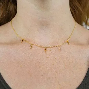 The lightning bolt charms are designed to be dainty yet noticeable, perfect for layering with other necklaces.
