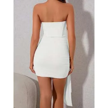 Colysmo Sexy Strapless Bodycon Corset Dress Side Draped Ruched Mesh Party Club Mini Dresses for Women White